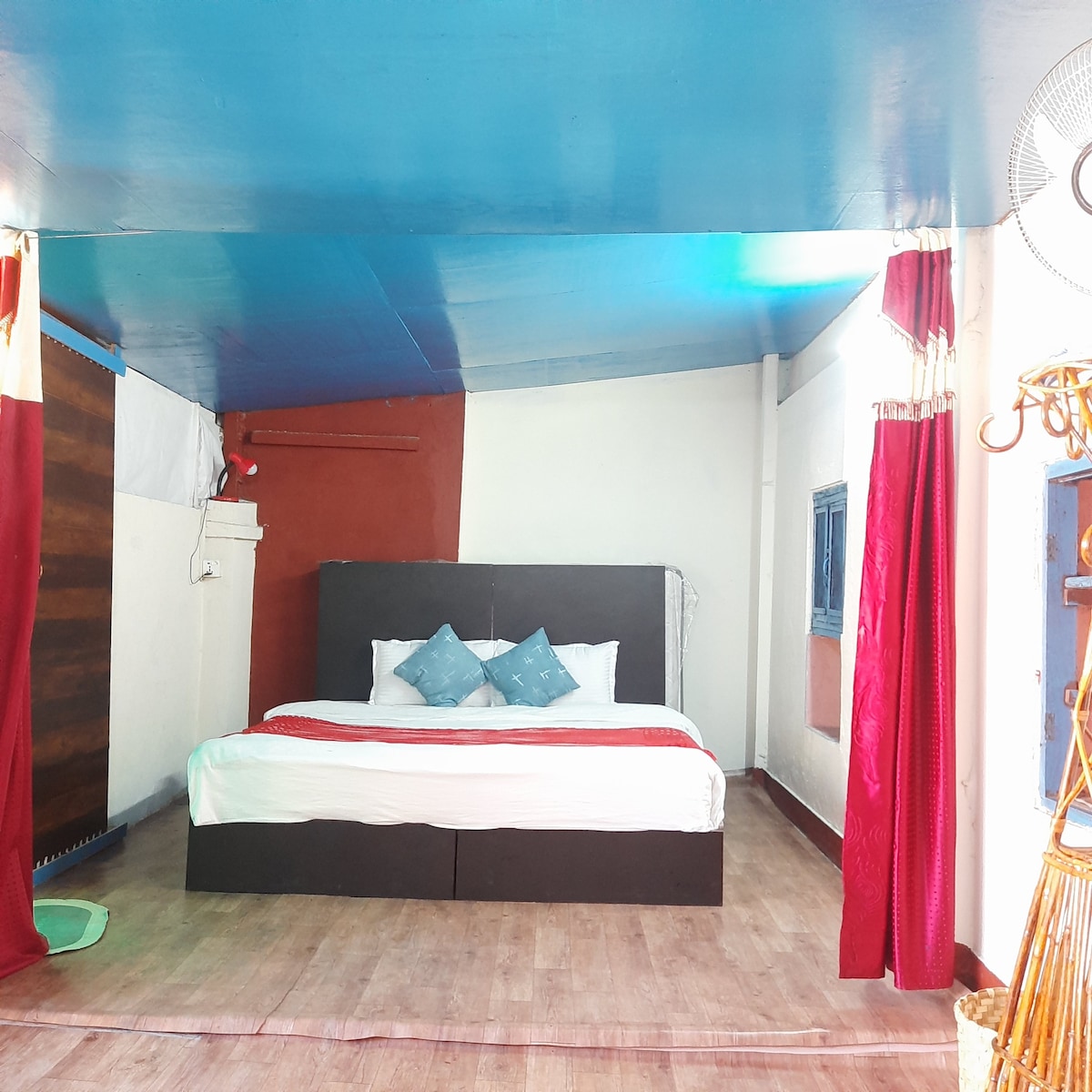 Con una ubicación central en Sanepa Chowk, esta es la habitación más grande de la casa y cuenta con cama tamaño king, baño privado, televisión, escritorio, armario, aire acondicionado, sofá y televisión. Los colchones y colchas son de la mejor calidad internacional. Desde el balcón de esta habitación también puedes disfrutar de vistas maravillosas de las colinas circundantes, incluida la de la colina Chandragiri. Restaurantes, cajeros automáticos, taxis, tienda conveniente está justo afuera de la propiedad.