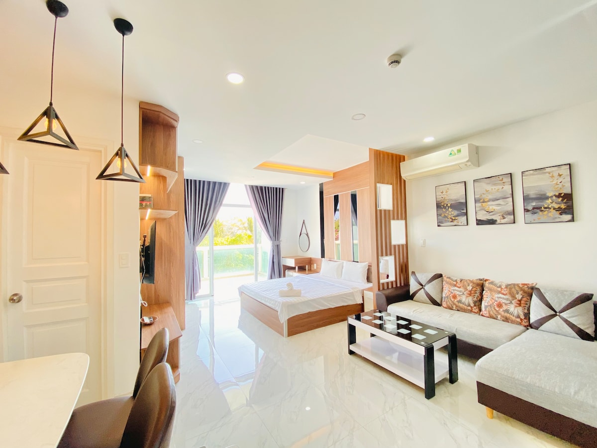 Despierta con las olas. Un lugar que vale la pena alojarse para tus vacaciones. - 1 apartamento lujoso, acogedor y limpio, en el piso 15 del edificio. Tiene capacidad para 2 huéspedes ( o 01 niño adicional menor de 12 años). Con vistas directas al mar, incluso puedes ver el amanecer justo en tu cama. - Café, té y agua de manantial gratuitos en el apartamento. - Cama tamaño king (2x2.4 m). - Departamento equipado con nevera pequeña, estufa, microondas, hervidor eléctrico y vaso de té. - Limpia el baño.