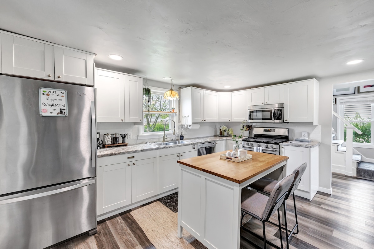 ¡Una casa céntrica y elegante, a unos pasos del histórico Lambeau! Esta propiedad de mediados de siglo está renovada con una mezcla de estilo moderno y clásico. ¡A pocos pasos de Lambeau, Resch Center, Titletown District, bares deportivos y música en vivo! Parque arbolado justo enfrente con parque infantil y canchas deportivas. Durante el otoño y el invierno, ¡disfruta de una vista al jumbotron! A solo 3 millas del distrito del centro y del sendero frente al río City Deck. Un lugar perfecto para un concierto entre semana, una escapada de fin de semana o el gran partido.