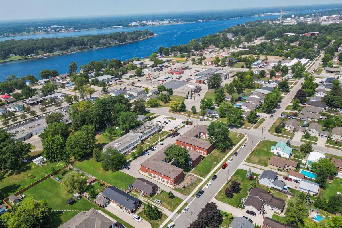 Comfortable 2-bedroom townhouse in central Corunna, ideal for refinery workers. Minutes from Shell, Imperial, Nova, Suncor, CF Industries, and 10-15 to Sarnia. Perfect home base for contractors and shift workers. Clean modern space with fast WiFi, dedicated workspace, in-unit laundry, A/C, free off street parking, and serene courtyard. Smart Lock with self check-in. Pets welcome. 2-min walk to shops, restaurants & downtown Corunna. Close to St. Clair River and Lake Huron beaches.