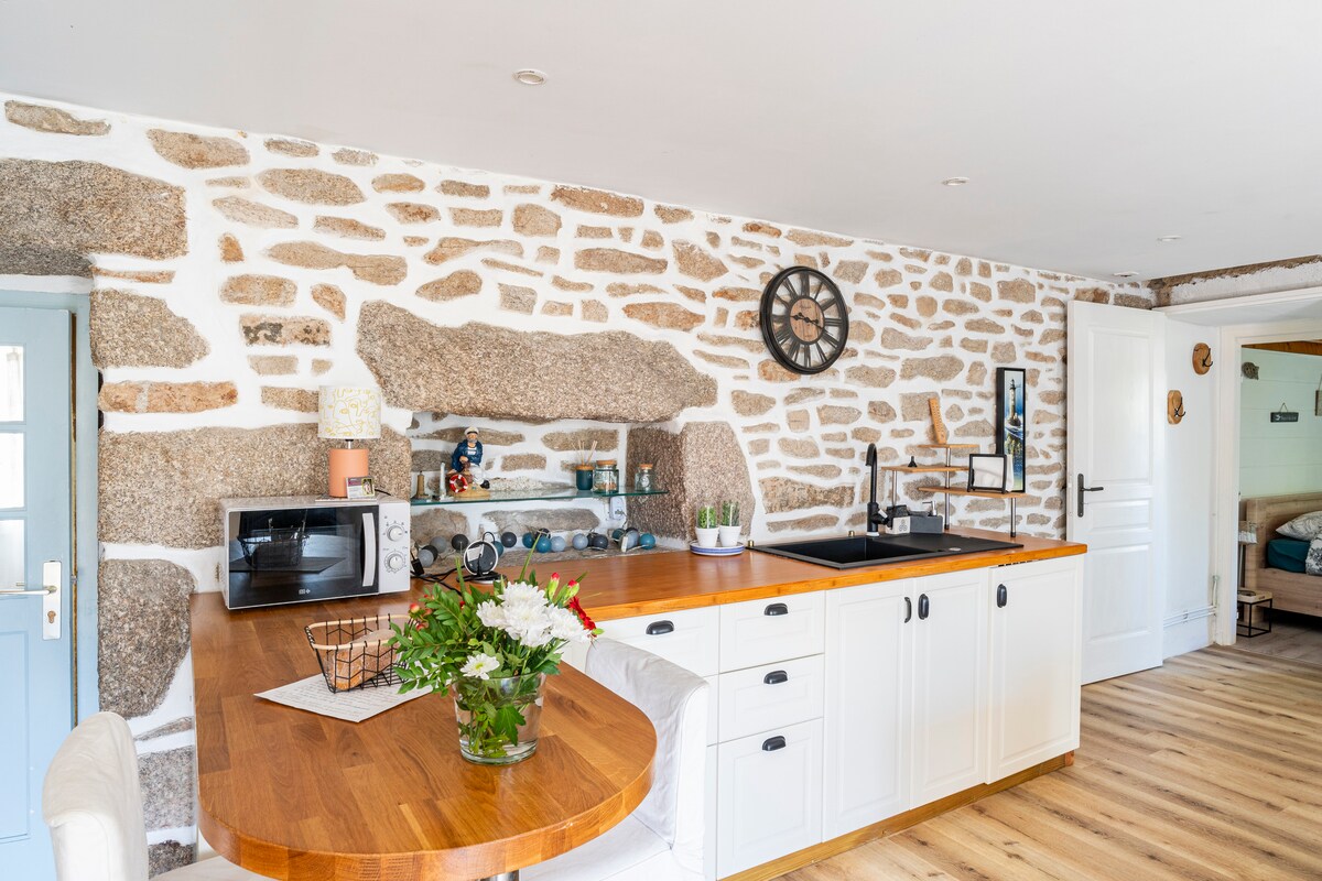¡Le damos la bienvenida a "Ty Nana"! Le damos la bienvenida a nuestra pequeña casa pequeña, situada a dos pasos de las playas. Venga a descubrir nuestro alojamiento acogedor, donde se encuentran las comodidades modernas y la autenticidad para crear una experiencia de alojamiento excepcional. Este pequeño edificio, una vez horno de pan de la granja, ha sido renovado en el estilo rústico de la época y le permite disfrutar de una estancia relajante en un entorno ideal, cerca de nuestra costa y de las playas de los alrededores.