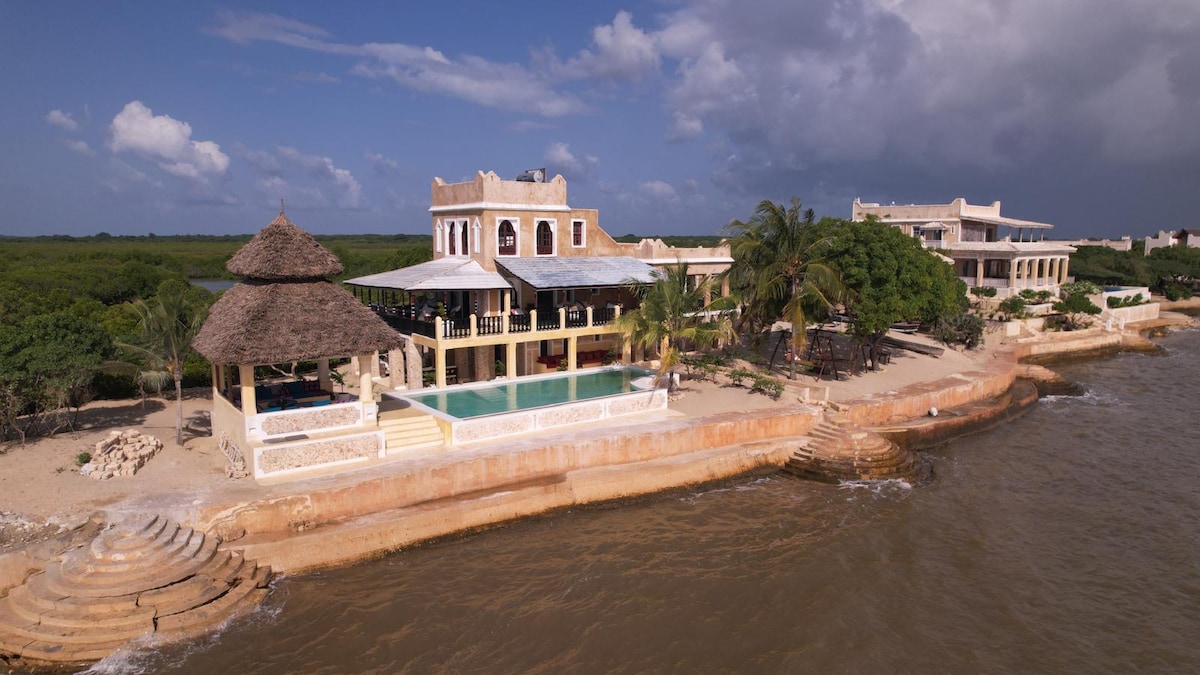 A charming white-washed seafront cottage at the edge of Shela village, nestled in a tropical garden on a small estate. Enjoy spectacular views of the channel and mangroves from the rooftop terrace. There is a 20m pool (shared with the main house) and the beach right at your doorstep. Your stay includes: - daily housekeeping - private chef - airport pickup - daily breakfast - purified water - internet - organic toiletries - 2 kayaks