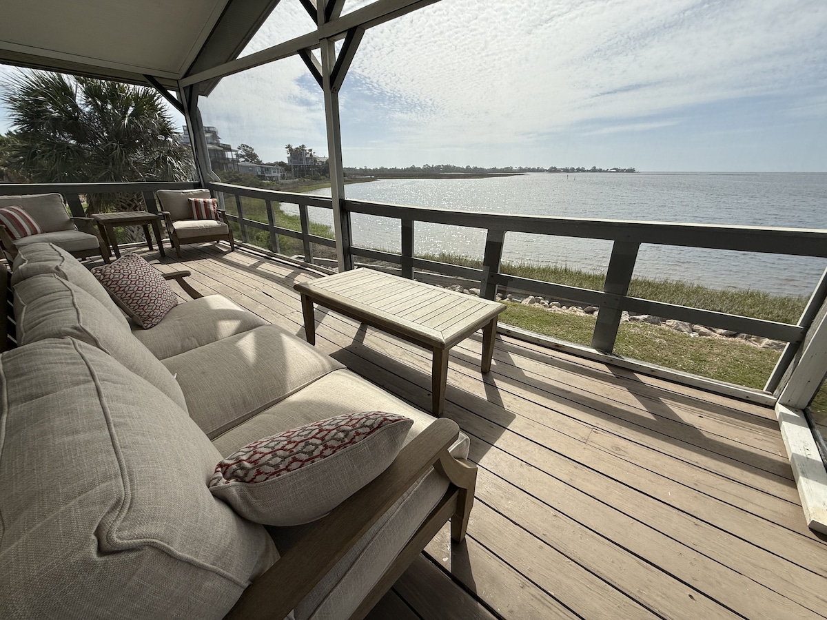This NOT so tiny, tiny home is located across from the bay, has everything needed to enjoy your vacation. Completely remodeled in 2017. Shabby chic, beach decor, Q sized bed, 2 stuffed chairs & complete kitchen. Screened in porch, dining area, chairs. Relax with a beverage & enjoy the amazing view of the bay. Affordable small family (2 adults 1 small child) vacation or romantic getaway. Professionally cleaned after each guest stay. Bathroom is small with corner shower. Pet policy in listing