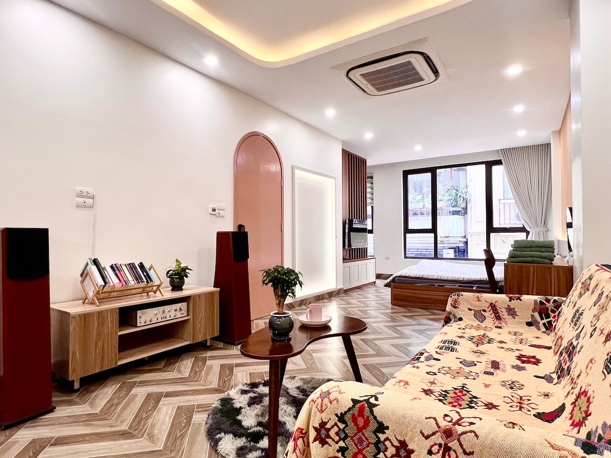 Disfruta del casco antiguo de Hanói desde un refugio moderno a pocos pasos de la icónica TRAIN STREET. Este apartamento cuenta con una CAMA SUPER KING SIZE, UN CÓMODO SOFÁ y un baño de lujo con ducha y BAÑERA DE MADERA. Cocina en tu COCINA PRIVADA y relájate con el PROYECTOR de 100 PULGADAS y el wifi. UNA GRAN VENTANA INSONORIZADA ofrece vistas animadas a la calle, combinando el encanto de Hanói con las comodidades del hogar. Ideal para viajeros que buscan una estancia única y tranquila en el corazón de la ciudad.