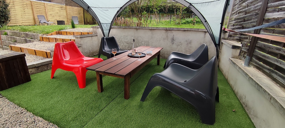 Apartamento de 2021 con una decoración cuidada para que todos puedan pasar una agradable estancia. Situado a 100 m del castillo, el mercado y las tiendas, se puede ir andando a todas partes (plazas de aparcamiento gratuitas en la calle). El apartamento está totalmente equipado para que solo tengas que deshacer las maletas (sábanas y toallas incluidas). La ropa de cama es nueva ( marca dunlopillo), el equipo de bebé (cuna, trona). Se proporciona un refugio cerrado para guardar bicicletas.