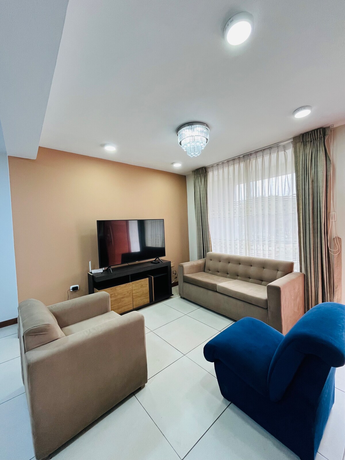 “Departamento moderno, tranquilo y acogedor en Trujillo, en el 3er piso a pasos del Óvalo Mochica. Diseño funcional para una estadía cómoda, ya sea por trabajo o descanso. Dispone de 4 habitaciones, 3 baños, 1 walk in closet, y camas para hospedaje flexible: cama Queen, cama de dos plazas y 2 camas de plaza y media. La cocina está equipada de manera moderna, se integra con sala-comedor, cuenta también con área de lavandería y todo lo necesario para que te sientas como en casa.”