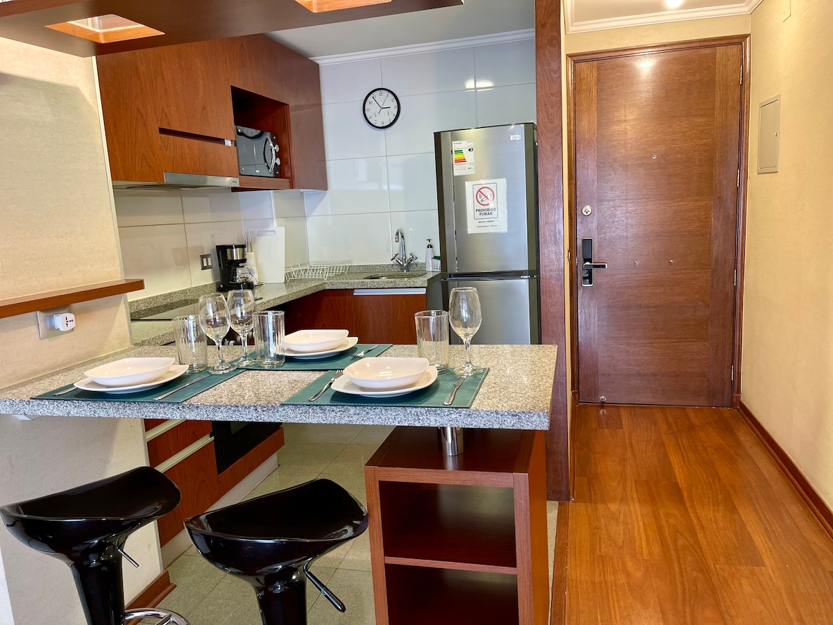 🏡 One-bedroom, one-bathroom apartment – perfect for up to 3 guests. 🔥 Equipped with heating and electric bed warmers for a cozy stay. 📶 High-speed fiber optic internet. 🅿️ Parking available inside the building 📍 Great location: just a 🚶♂️3-minute walk from Irarrázaval Metro Station. 🚌 Easy access to public transportation 🛒 Nearby supermarkets and pharmacies 🏟️ Close to the National Stadium 🏥 Minutes from Carabineros Hospital