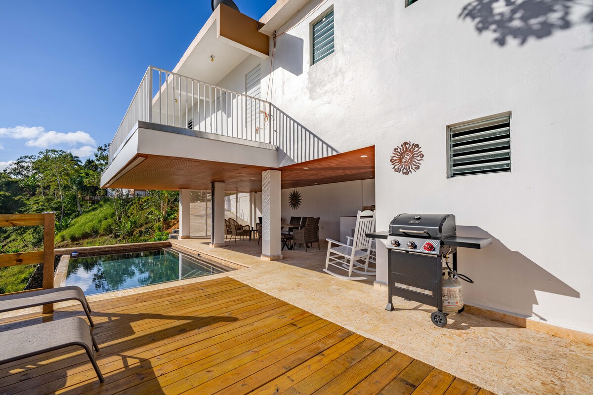 Casa de Campo Abuelita is a cozy, spacious 1960s home, once part of a coffee estate and now a tropical flower plantation in the Puerto Rican mountains. Swim in the clear Río Casey, go birdwatching, hiking, or stargazing. Relax by your private solar-heated pool and terrace. With high-speed internet and automatic backup power, comfort is guaranteed—perfect for couples, families, or solo travelers seeking the ultimate Puerto Rican nature escape.