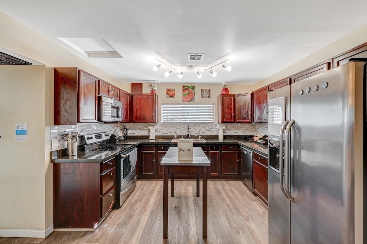 El encanto te espera en el Tuscan Luau, una casa con piscina única, a solo 15 minutos del centro de Fremont. Deléitate con una piscina de temática tropical al aire libre y una decoración de inspiración italiana en el interior, con patio trasero que se abre al parque. Imagínate esto... cocina el desayuno de la mañana en una cocina totalmente equipada, luego juega al frisbee en el parque antes de refrescarte en la piscina y, finalmente, pasa el rato en la hamaca mientras lees tu libro favorito o pasas tiempo en familia en el patio. ¡Crea recuerdos para siempre aquí!