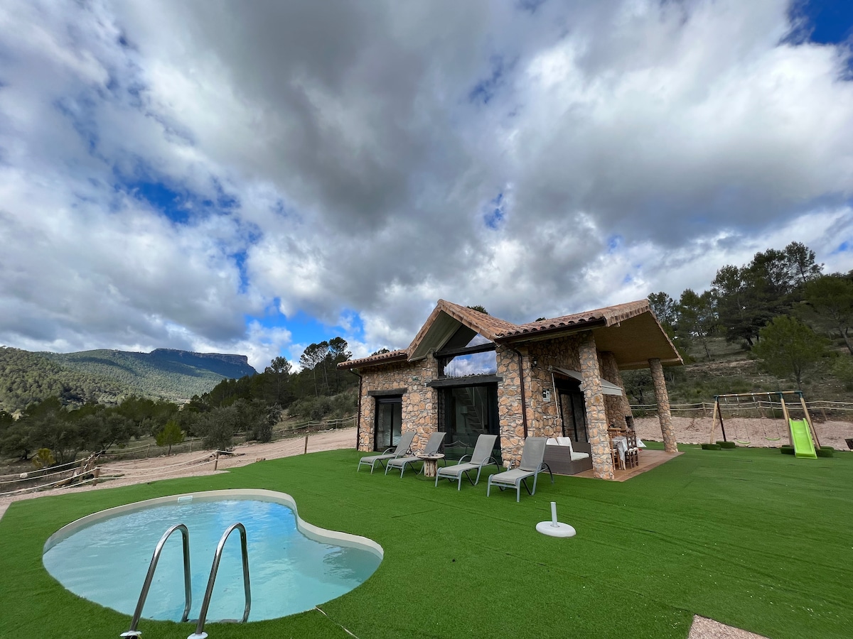 Casa rural Los Calares independiente con capacidad max. 8 personas, con jardín, bbq, parque infantil y piscina privada. Ubicada en Cotillas (Albacete) a escasos 8 km del nacimiento del Río Mundo, en pleno Parque Natural Del Calar del Mundo y de La Sima.