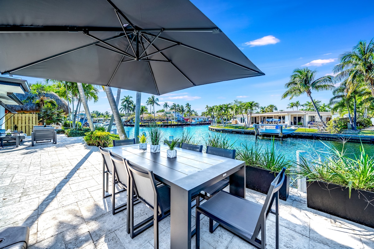 Escápate a este lujoso refugio costero en una exclusiva comunidad cerrada, a pocos pasos de la Intracoastal y a minutos de la playa. Los techos abovedados, la luz natural y una acogedora chimenea crean un ambiente ideal para relajarse. Disfruta de una mesa de billar, seis televisores inteligentes con streaming, wifi de alta velocidad y estacionamiento para más de 5 coches. Camina hasta el centro comercial Galleria, los mejores restaurantes y cafeterías. La mezcla perfecta de comodidad, estilo y ubicación para tu estancia en Fort Lauderdale.