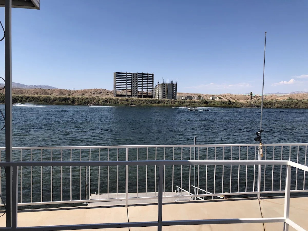 Lleva a toda la familia a este fantástico alojamiento que tiene un montón de espacio para divertirse. Casa nueva construida en 2022 frente al río, frente a los casinos. Inmaculadas 3 habitaciones, 2 baños completos, lavandería, comedor, sala de estar. Casa de 1500 pies cuadrados con capacidad para 8 personas en el río Colorado. Muelle privado para barcos, porche, patio, aparcamiento cubierto para barcos, wifi completo en la casa. Hermosas vistas nocturnas.
