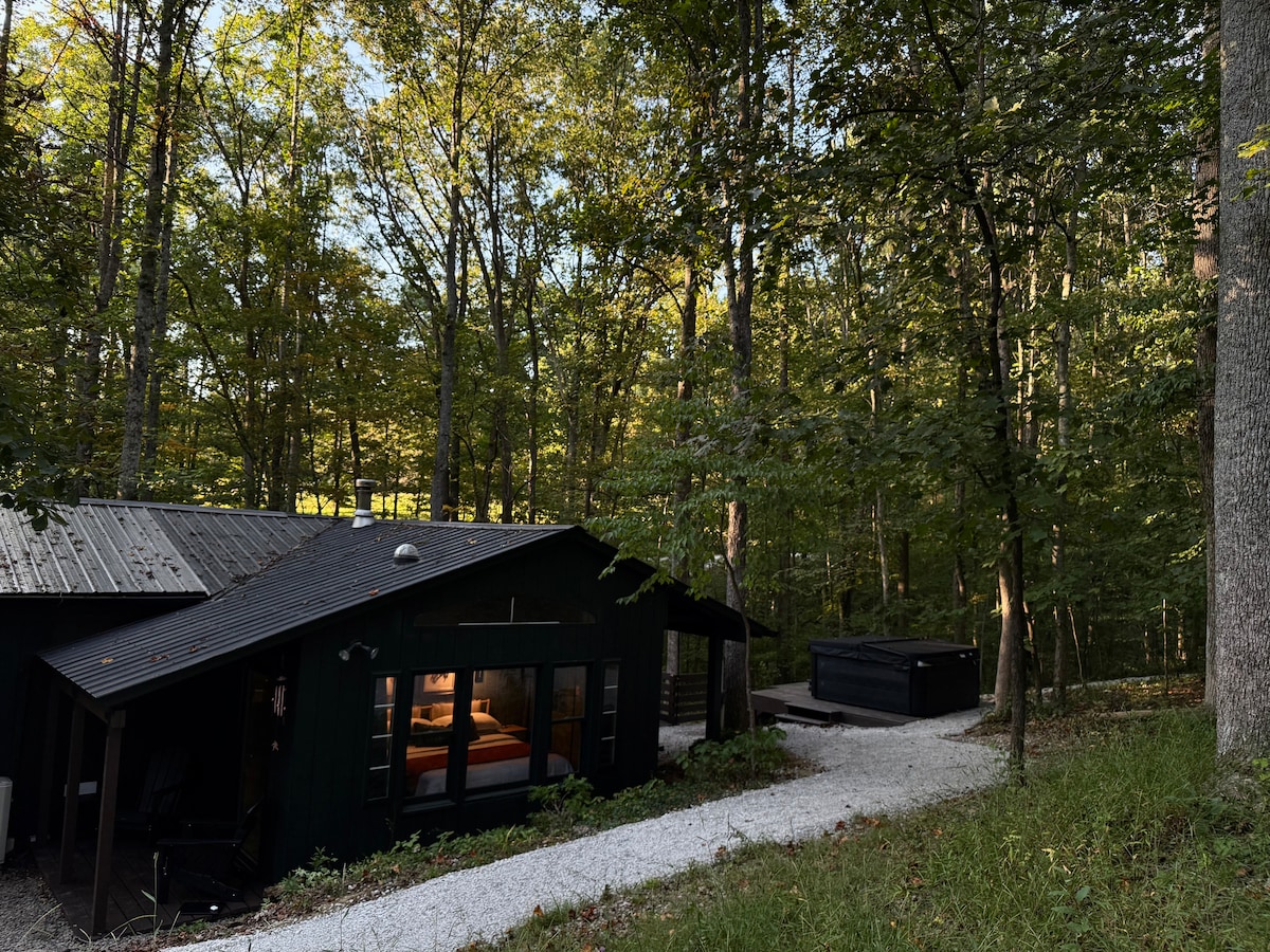 The Study es una cabaña minimalista y moderna con paredes de cristal de 360 grados que te invitan a contemplar el exterior mientras te sientes cómodo en el interior. El espacio interior se extiende a la perfección a los amplios patios, que cuentan con una bañera de hidromasaje para 6 personas, chimenea Malm, parrilla y comedor. Ubicado en una tranquila propiedad boscosa de 24 acres, disfrutarás de tranquilidad y privacidad a solo 5 millas de las famosas rutas de senderismo de Hocking Hills. Tanto si quieres relajarte como explorar la naturaleza de los alrededores, The Study te ofrece un refugio de lujo inolvidable.