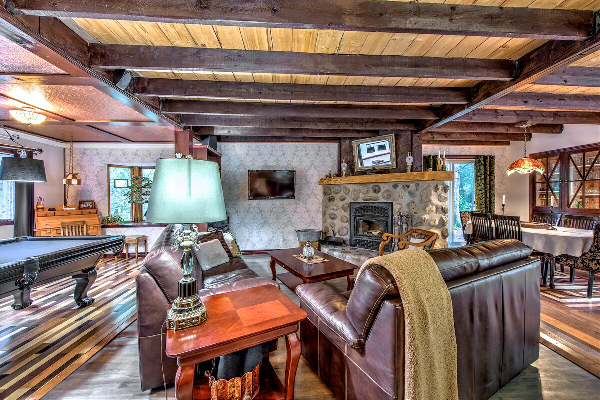 El dormitorio está aislado en el bosque, cerca de Mont-Tremblant. Apreciarás el sitio por la vista de las montañas, el río, la presencia de caballos y su exclusividad. Puede alojar hasta 26 personas en 9 habitaciones semiprivadas (ropa de cama no incluida), cocina, salón/bar con chimenea, comedor, futbolín, barbacoa al aire libre, fogata para reuniones. Es posible añadir visitantes con tiendas de campaña por un coste adicional. Un salón con toro mecánico y entretenimiento está disponible por un cargo adicional.