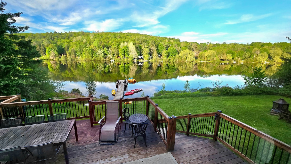 Welcome to our spacious and warm chalet Aux 4 Foyers! Here, your vacation will be full of rest ♪ ✧ Central AC ✧ Located only 60 minutes from Montreal ✧ Relaxation spa with a view of the lake! ✧ Fully equipped kitchen with a huge island and breakfast area. ✧ Work space, ideal for teleworking ✧ Indoor gas fireplaces + Pellet ✧ Outdoor Patio Heater ✧ Outdoor wood fireplace in summer ✧ 1 pedal boat, 1 kayak, 1 paddleboard
