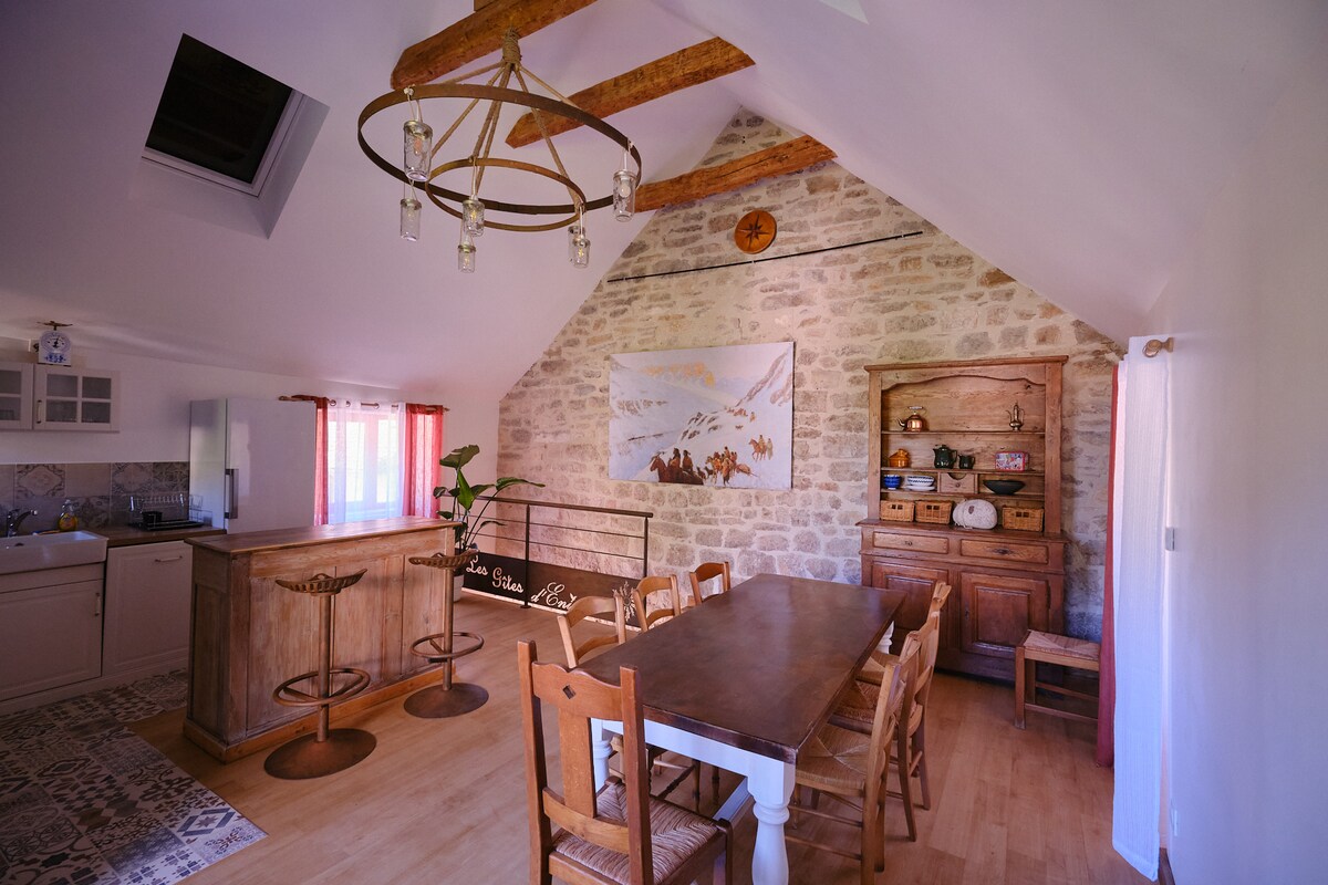 Cette grange spacieuse, rénovée avec goût vous enchantera de par son emplacement en pleine nature, dans un cadre préservé. La terrasse de 28m² offre un panorama unique sur la forêt, on y est bercé par le son du ruisseau en contre bas. Ici pas de TV mais des livres. Chaque détails a été minutieusement pensé, tout a été chiné. Ce logement de 112 m², tout équipé, avec 2 chambres doubles, une grande pièce à vivre avec insert, un beau jardin, est un lieu ou le temps est suspendu. Aucun vis à vis.
