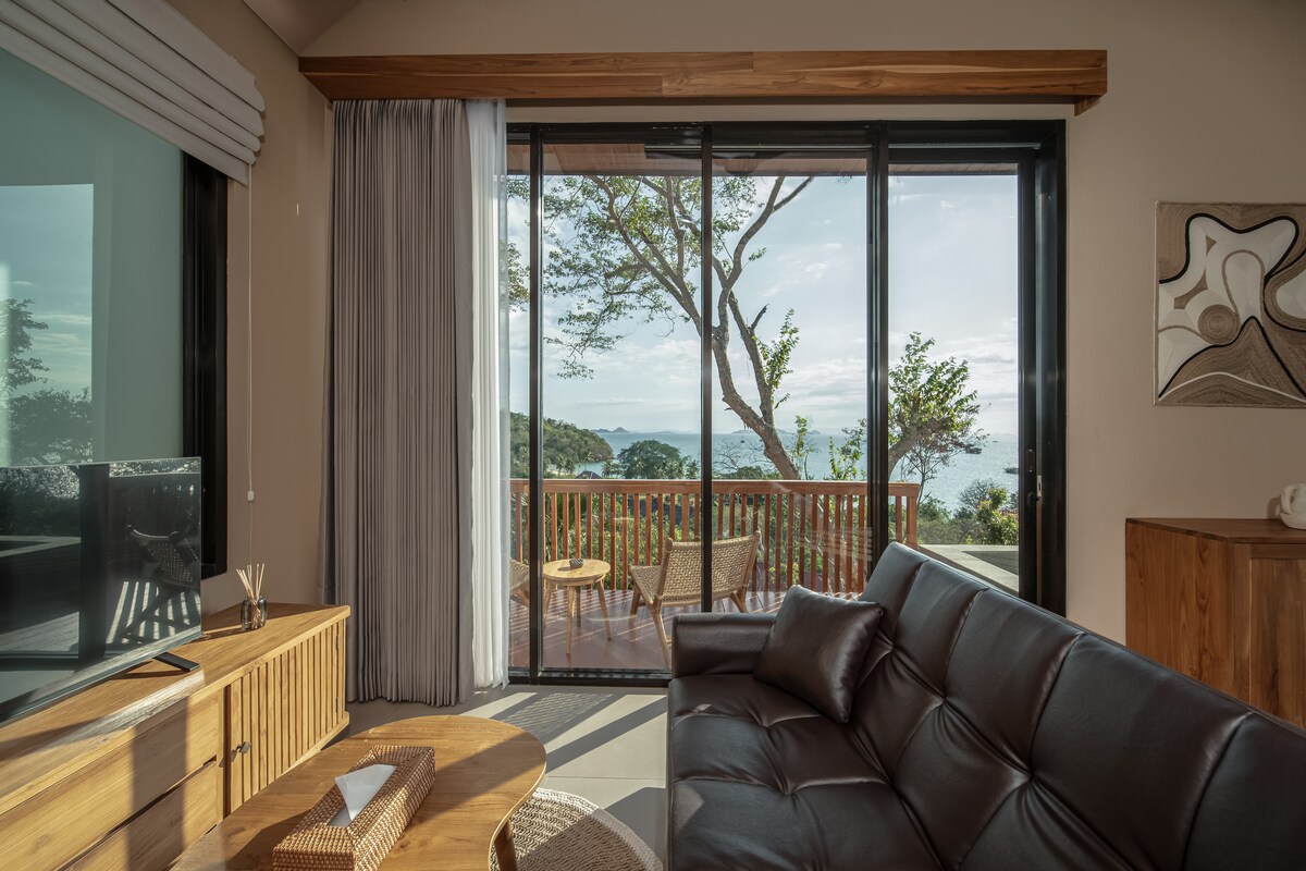 Scenic Studio Villa with Sea View & Outdoor BathtubSet on a hillside overlooking the sea, this open-plan studio villa blends tropical charm with modern comfort. It features a cozy sleeping area, kitchen, and living space in one airy layout. Enjoy a unique outdoor bathtub, stylish indoor bathroom, and breathtaking sunset views — perfect for couples or a small family.