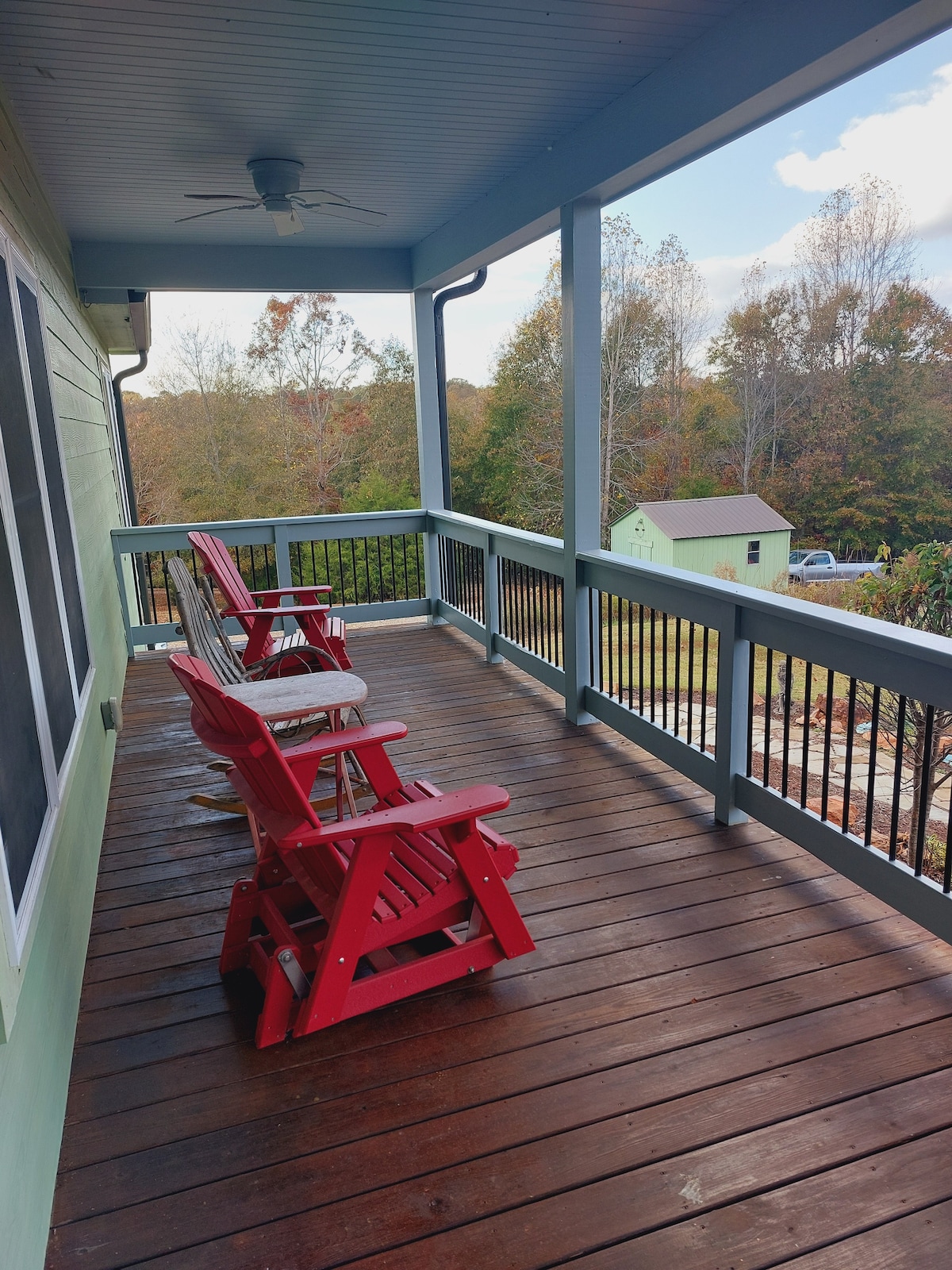 Relax at this peaceful farm while looking from the backyard at the South Mountains. The renovated house is decorated throughout with family quilts, and antiques. Relax on the deck leading from the master bedroom or the back patio and enjoy the view. Visit the restored homestead on a guided tour where the hosts will tell you of the restoration project, ongoing. The farm produces award winning sorghum syrup and stone-ground cornmeal and grits. Follow us at FB Willis Farms Belwood.