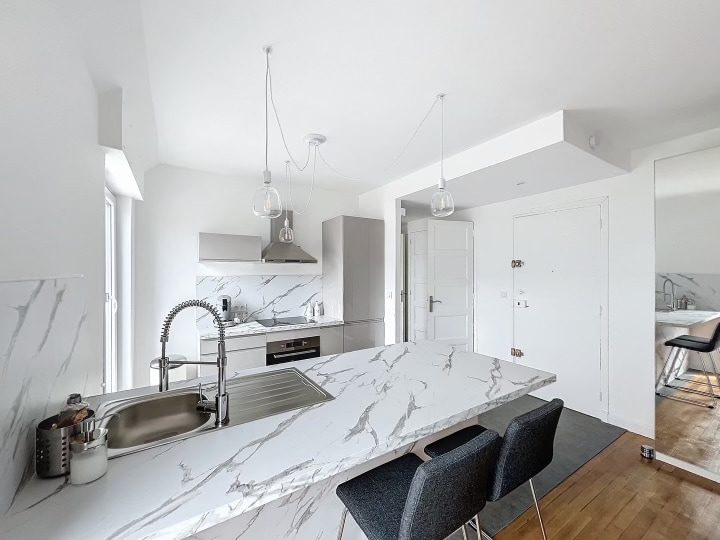 Este espacioso T2 de 43 m2 totalmente renovado en 2024 le da la bienvenida para una estancia con todas las comodidades en el corazón de un hermoso barrio del centro de Grenoble. Consta de un dormitorio, un sofá cama, un baño, un aseo separado, una sala de estar / cocina abierta y 2 balcones. Situado en el noveno y último piso con ascensor, ofrece una terraza de 30 m2 con vistas panorámicas al Vercors y la Bastilla.