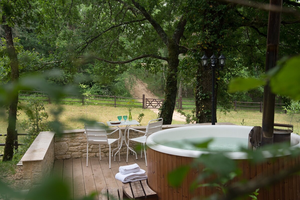 Estamos muy contentos de haber construido una nueva cabaña en el Domaine de Lalande-Laborie, muy cerca de Montignac-Lascaux y sus famosas cuevas. ¡Le encantará nuestra cabaña por sus hermosas vistas a los bosques y prados y su interior cómodo y muy acogedor! La cabaña está climatizada y tiene calefacción. Una gran terraza muy agradable en la que se puede tomar el aperitivo y desayunar, mientras se contempla la naturaleza (milanos, corzos, ardillas).