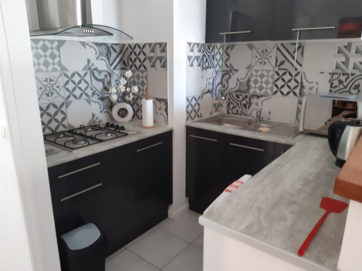 estudio de 48 m2 con aire acondicionado casa adosada, planta baja, terraza cubierta con vistas a los Pirineos, a 3 km de la comuna rural con todas las tiendas y servicios. A 1/2 hora de Pamiers, 1/2 hora de Foix, 2 horas del Pas de la case, 1 hora de Toulouse en coche. 1 dormitorio, 1 cuarto de baño, sala de estar con sofá cama, 1 cocina con microondas, cafetera, hervidor de agua, placa de 4 fuegos, nevera. Se proporcionan sábanas y toallas.
