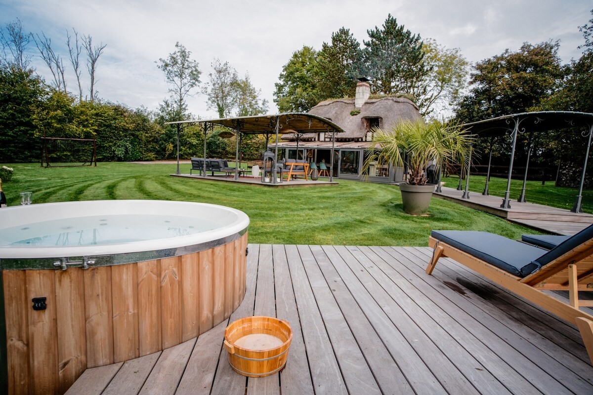 Lodge con bañera nórdica privada en Normandía