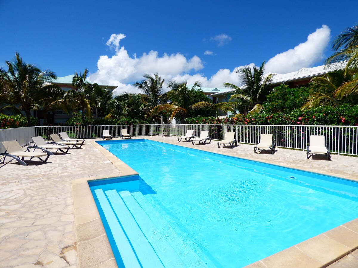 apartamento de 75 m 2 reformado con vistas al mar en la residencia de crystal beach en saint François . - el complejo dispone de 2 piscinas con acceso directo a la playa de Raisins Clairs. -un bonito parque arbolado tranquilo y entrada segura con su galería comercial ( panadería,supermercado,restaurantes y comida rápida,peluquería,salón de masajes ,.. ) el apartamento consta de: - 2 habitaciones amplias y con aire acondicionado -cocina moderna -ducha italiana - cisterna de agua - wifi -parking numerado