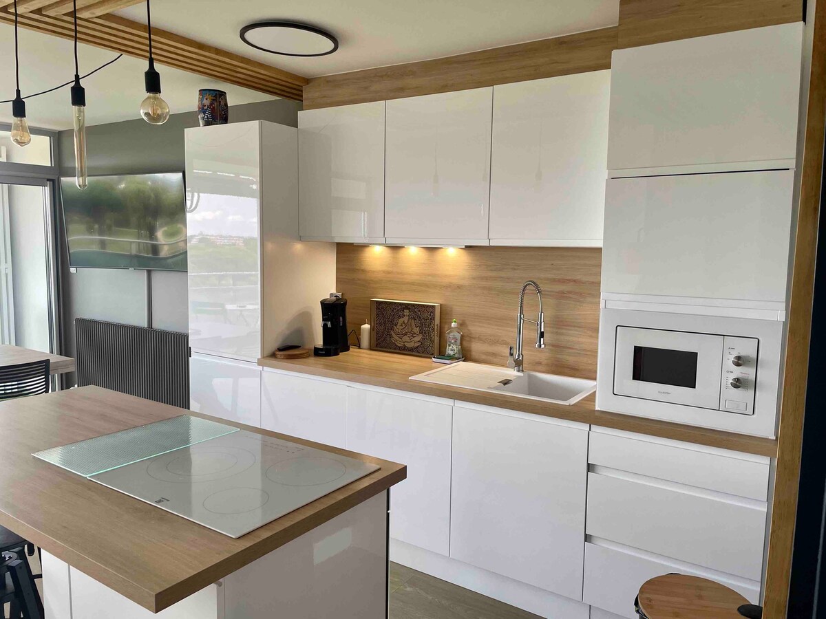 À 7 min à pied de la plage, ce duplex lumineux de 50 m² est idéal pour un séjour au Grau-du-Roi. Il accueille jusqu’à 4 personnes : lit queen size + lit simple à l’étage, canapé convertible avec vrai matelas. Climatisation, cuisine équipée (lave-vaisselle, four, micro-ondes, machine à laver, lave vaisselle…), balcon agréable pour manger dehors. Draps et serviettes fournis. À noter : escalier modulaire un peu raide. Plage, commerces accessibles à pied. Animaux non autorisés. Parking gratuit.