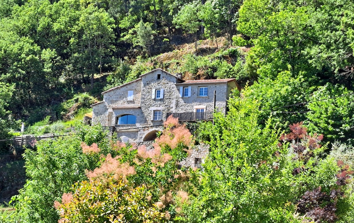 Relájate en este alojamiento único y tranquilo ubicado en una antigua hilandería de seda, una casa rústica y cómoda con terraza con vistas al río. 55 m2 para 2 habitaciones abovedadas: Una sala de estar con cocina, comedor y salón (con 2 camas individuales) Un espacio para dormir con una cama de 2 plazas, una cama de 1 plaza y un baño. Una escalera permite acceder al apartamento y a una hermosa terraza para barbacoas. Hay una zona de baño privada cerca. Aparcamiento en el lugar.