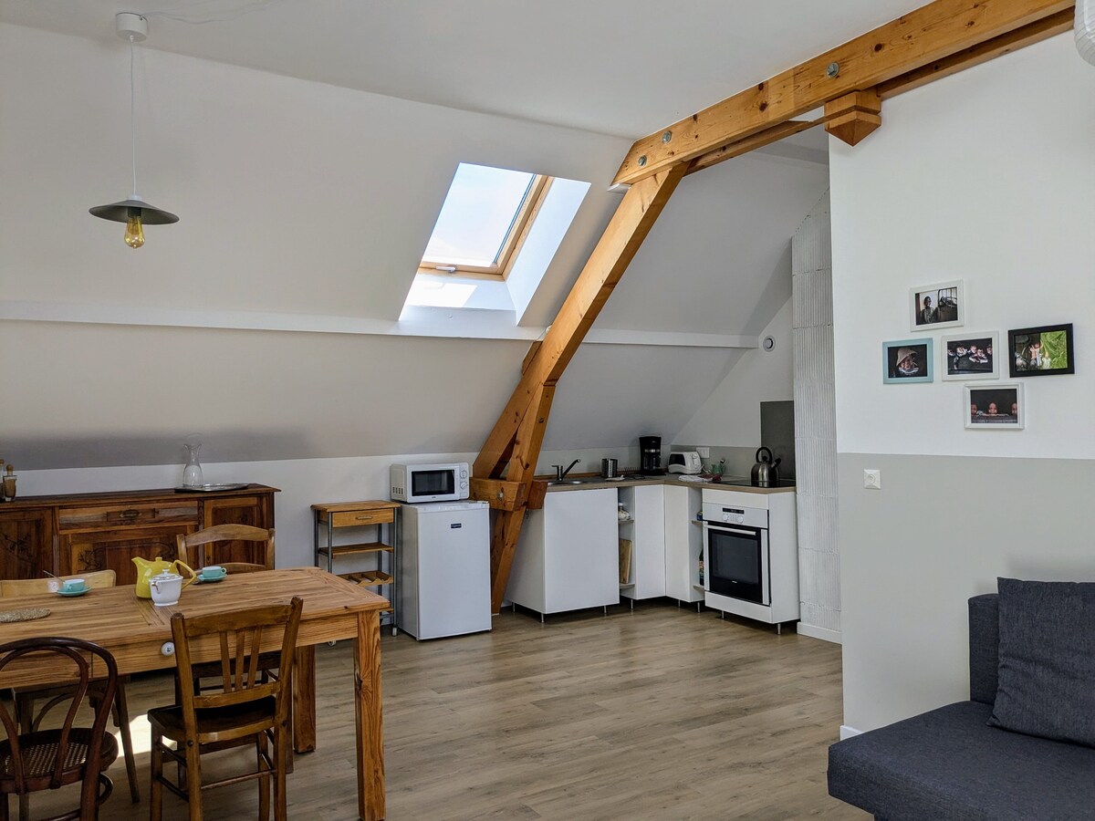 Apartamento/estudio en planta baja en una casa llena de encanto a la entrada del casco antiguo. Apartamento/estudio nuevo con las comodidades necesarias para pasar una estancia agradable en todas las estaciones. Consta de un baño independiente (6 m2) con ducha, lavabo, inodoro suspendido, radiador toallero y lavadora. Una habitación principal de 32 m2 con cocina equipada, sala de estar con sofá cama, TV y WIFI y una zona de dormitorio con cama doble. Toallas, ropa de cama, calefacción con estufa de pellets
