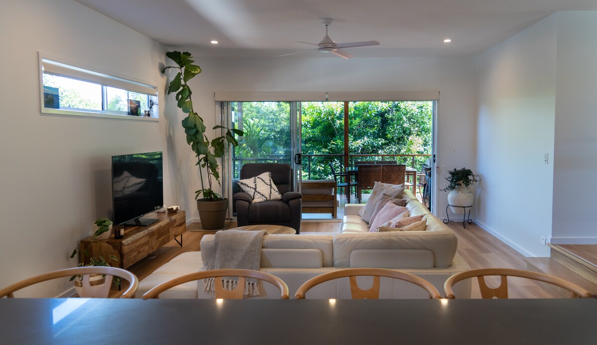 ¡Bienvenido a tu hogar lejos de casa! En cuanto llegues, entenderás por qué Anne's on the Green ha sido una de las favoritas de los huéspedes. Situada a 5 minutos del corazón de Byron Bay, encaramada en lo alto del campo de golf de Byron Bay con vistas al campo de golf, esta preciosa casa de huéspedes de dos dormitorios ofrece toda la tranquilidad que necesitas. Con un impresionante diseño arquitectónico, Anne on the Greens tiene vistas durante días, atrapa toda la brisa y proporciona la calma que tus vacaciones necesitan. ¡Los amigos peludos también son bienvenidos!