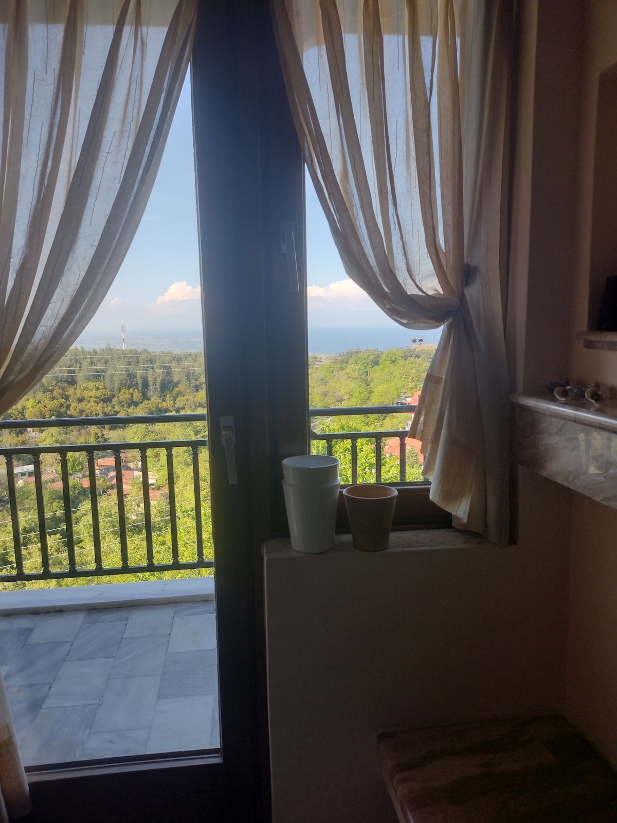 Tranquila casa familiar en un pintoresco pueblo de pescadores a 50 metros del mar. Apartamento en el primer piso. Sala DE estar 2 dormitorios baño balcón con vistas AL jardín Y AL mar. Patio en la planta baja con árboles y flores. A 100 metros de la parada de autobús de la ciudad. A 5-10 minutos a pie de tabernas y supermercados. A 25 minutos en coche del aeropuerto de Macedonia. A 10 minutos en coche de la playa de arena organizada Potamos (estilo Halkidiki). A 15 minutos en coche de Halkidiki. Medios de transporte preferidos.