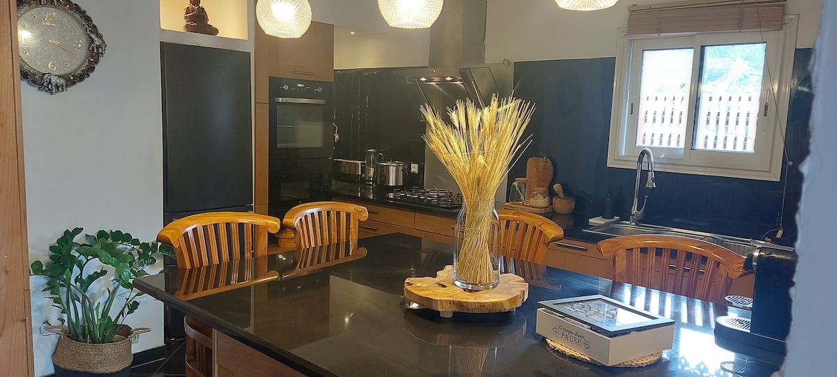 Villa entièrement équipée, idéale pour un séjour détente . La villa dispose de 2 chambres spacieuses, chacune avec son point d’eau privé. Profitez d’une cuisine équipée et de toutes les commodités modernes : Wi‑Fi, TV, machine à laver, sèche‑cheveux, fer à repasser, bouilloire, cafetière (avec café) et lit parapluie. 2 chambres spacieuses, chacune avec point d’eau literie haute gamme Emplacement Facile d’accès et proche de toutes commodités. À proximité de Saint‑Pierre
