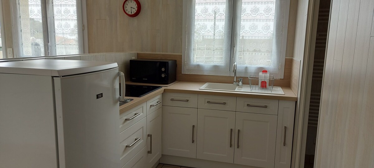 Estudio de 35 m² a 10 km de Puy du Fou, planta baja, a 2 minutos a pie del centro de la ciudad. Capacidad para 4 personas: cama de 140 cm + sofá convertible (ideal para 1 o 2 niños). Baño con ducha, inodoro, lavabo. TV, wifi, zona de escritorio. Cocina pequeña: fogones, nevera/congelador, microondas, hervidor, utensilios. Artículos básicos de despensa: té, café, aceite... Casa del siglo XIX: naturalmente fresca en verano, sin necesidad de aire acondicionado. Se proporcionan sábanas, toallas y paños de cocina.