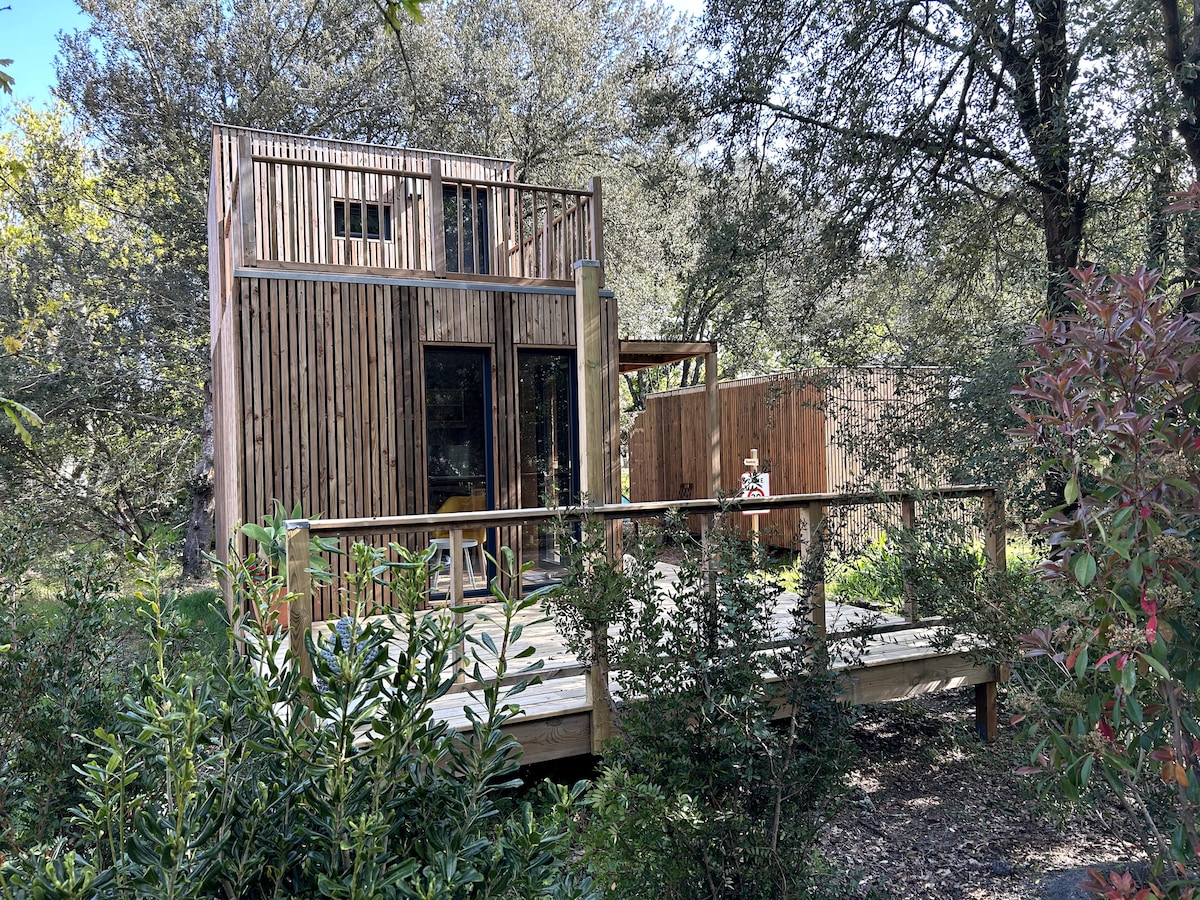 Ofrecer un alojamiento inusual de alta gama, estar en un entorno tranquilo en el corazón de la naturaleza con todas las comodidades de una hermosa habitación de hotel. El lodge se encuentra en una gran parcela arbolada de más de 2 hectáreas. La estructura está a 3 m de altura, accesible por una escalera, tiene 30 m2 interior y 25 m2 de terraza parcialmente resguardada. Hay un spa en la terraza. Côte & Lodge se encuentra en Talais en la costa oeste en Gironda entre el océano y el estuario cerca de soulac sur mer