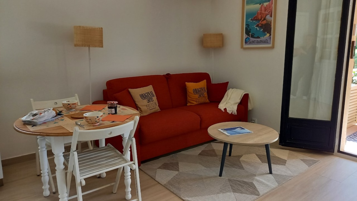 Ubicada en el corazón de Estérel la "Plage de Léontine" es un apartamento renovado en 2025. La playa está al final del jardín. Impresionantes vistas al mar, la verás desde el sofá o desde la terraza:-) El apartamento tiene su jardín y está cerca de la playa (justo enfrente del jardín), de todos los comercios y actividades. No necesitará su auto. La pequeña estación de tren de Agay le permitirá moverse muy fácilmente. ¡Alojamiento tranquilo y vacaciones relajantes!