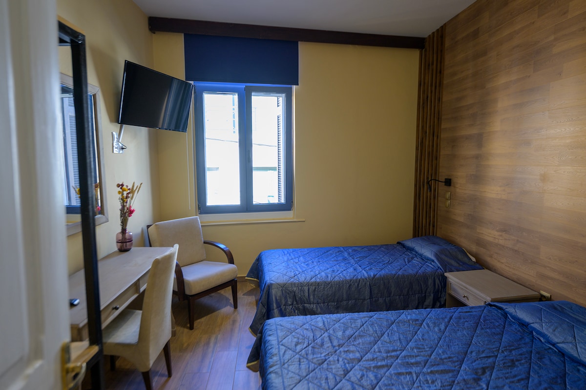 ESTAMOS EN EL CENTRO DE AYVALIK, A 2 MINUTOS A PIE DEL BAZAR. Tercer piso de una mansión histórica de rumores en Ayvalık Nuestra habitación de piedra en el suelo. Para llegar aquí, pasas por las históricas calles estrechas de Ayvalık, disfrutando del aire fresco. Esta habitación tiene 2 camas individuales separadas (se pueden unir camas opcionales) y un sofá cama. Abre el sofá cama con capacidad para 1 adulto o 2 niños. Tenemos una terraza compartida con una magnífica vista de Ayvalik.