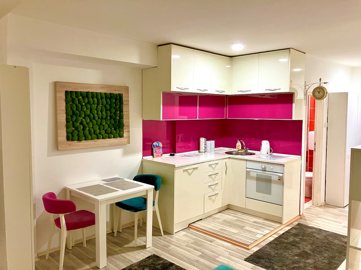 Los apartamentos Deluxe Jade ofrecen un refugio sereno para familias que buscan relajación y comodidad en el corazón de Niš. El apartamento está elegantemente amueblado con una decoración de lujo, lo que proporciona un ambiente perfecto para relajarse después de un día de explorar la ciudad. Los huéspedes pueden disfrutar de unas vistas impresionantes de Niš, lo que mejora la experiencia de descanso y ocio. Con alojamientos espaciosos y comodidades modernas, los apartamentos Deluxe Jade garantizan una estancia inolvidable para todos.