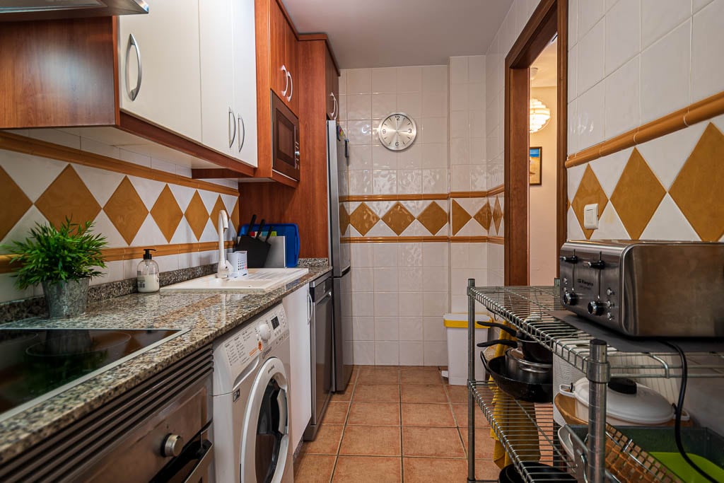Kick back and relax in this calm, stylish space in the beautiful, well-maintained complex of Mar de Pulpi. This modern, first floor apartment has everything you need for a relaxing, comfortable stay. Free Wifi, comfortable bed, quality bed-sofa, 2 Flat-screen Televisions, fully equipped kitchen with many extras such as a large fridge-freezer, microwave, filter coffee-machine, kettle, washing machine, clothes-airer, iron, hairdryer. 5 minutes easy walk to the beach, restaurants and supermarket.