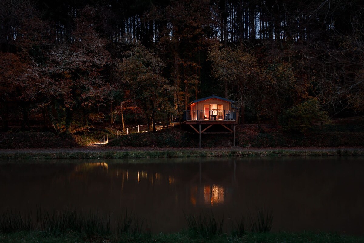 Treetop cabin & outdoor bath in 45 acre woodland