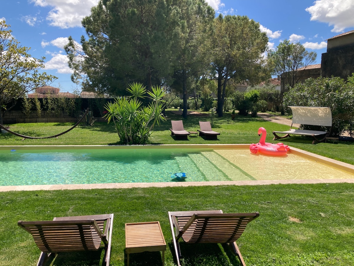 Rien n'a été laissé au hasard dans cet hébergement de charme haut de gamme. Appartement pouvant recevoir jusqu'à 6 personnes(+/- 1 pers) 2 chambres 1 grand lit 160 et 3 lits en 90 + grand 1 canapé lit. Salon, salle à manger, TV, wifi, bureau, buanderie, patio, cuisine entièrement équipée. petit déjeuner sur demande SDB avec vasque et douche, wc. Accès facile, parking gratuit au pied du logement. ideal famille, couples ou entre amis Accès piscine avec créneaux horaires de préférence