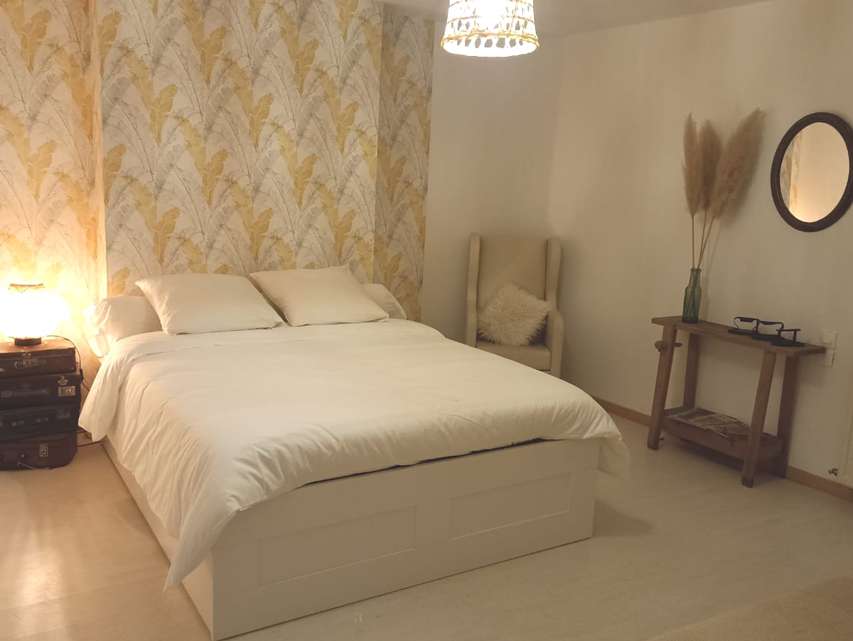 ¡Bienvenido a Les Charmes du Lac! Disfrute de un paréntesis de tranquilidad y bienestar en pareja en un entorno cómodo con una decoración decididamente romántica. Relajación asegurada gracias a nuestro jacuzzi 100% privado. Por último, descubra el toque de sensualidad que ofrece el "Love Sofa"... Los desayunos están incluidos los fines de semana,(como suplemento). Para completar su estadía, puede pedir uno de nuestros servicios adicionales (correo electrónico solicitado después de resa). Entonces... ¿listo para relajarse?