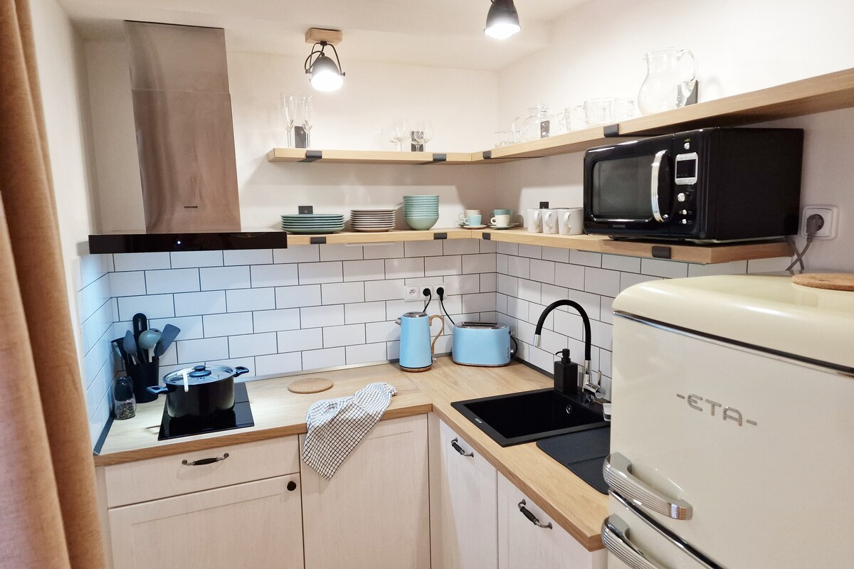 ¡Somos 2 en 1 ... apartamentos con las ventajas de una casa de campo! Te alojarás en un apartamento superiormente equipado, que tienes todo para ti y al mismo tiempo puedes usar las otras áreas de toda la casa: sala de juegos para niños, sauna, terraza, jardín, piscina, pérgola con parrilla, garaje. ¡Y un bar compartido! También hay una máquina de café de calidad y cerveza de barril de la microcervecería ;) El espacio entero es juguetón, pensado en detalle, es inteligente y autoservicio. ¡Mimamos a nuestros huéspedes!