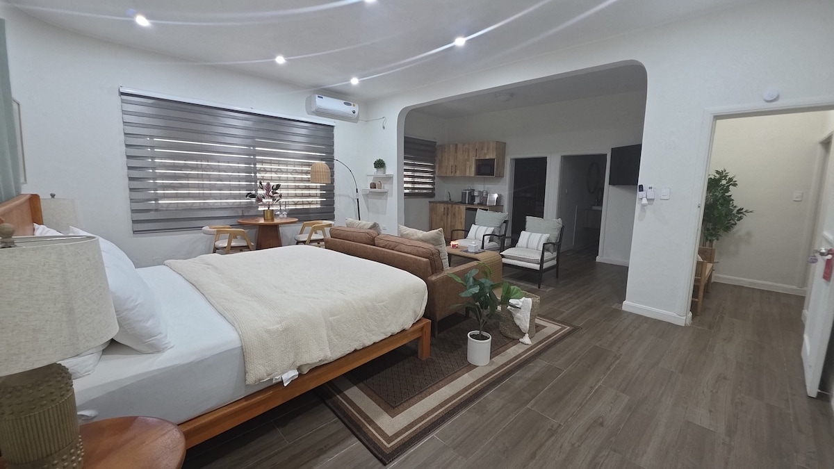 Saturia's Oasis Guesthouse es un tranquilo refugio de 7 habitaciones y 8 baños con seguridad 24/7, ideal para viajeros solitarios, parejas y grupos. Nuestra suite con cama tamaño queen cuenta con una cama tamaño queen, baño privado, aire acondicionado, armario, mininevera y televisor inteligente para una estancia cómoda. Disfruta de café, té, agua y acceso a nuestra máquina de hielo de encimera de cortesía. Desayuno incluido. Las bebidas están disponibles para su compra. Servicio de lavandería en el sitio y un chef privado. Explora nuestros anuncios de habitaciones completas para obtener más opciones.