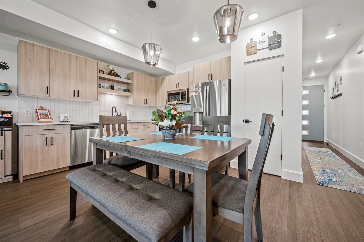 Retiro espacioso y familiar con encanto moderno de granja. Disfruta de una sauna privada, jacuzzi, chimenea, cocina completa y un gran patio con una cama elástica, perfecta para que los niños jueguen. Cuenta con 2 dormitorios acogedores, lavandería y un generoso estacionamiento. Ubicado cerca de la laguna, el centro de Ogden, estaciones de esquí, lagos, rutas de senderismo y parques todoterreno. Diseñado cuidadosamente para la comodidad, la diversión y los recuerdos familiares inolvidables.
