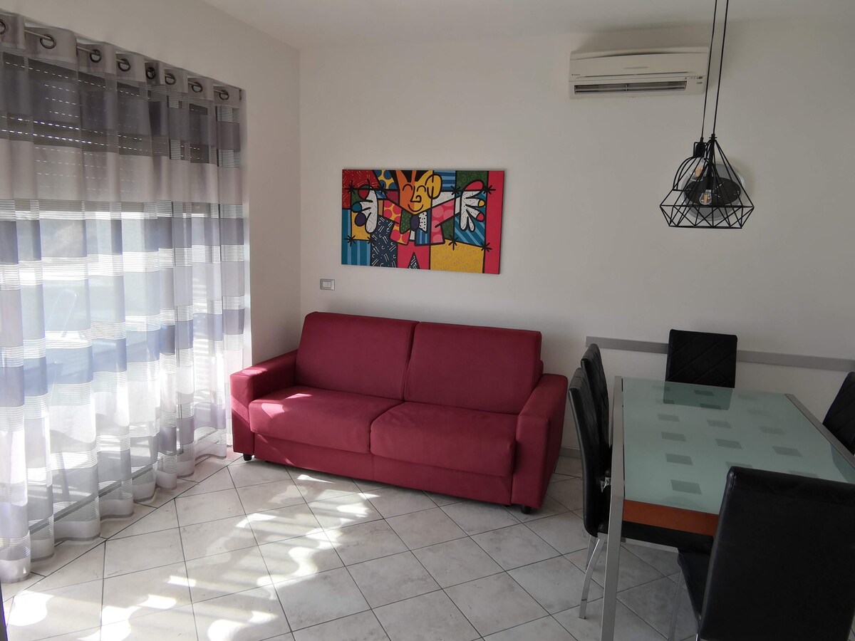 Apartamento recién reformado, entre piazza trieste y piazza drago, cerca de todas las tiendas, restaurantes, playa a 2 pasos del mar con plaza de playa (sombrilla y dos tumbonas), wi-fi, aire acondicionado, TV en todas las habitaciones, cocina equipada con lavavajillas, cafetera, microondas, tostadora, baño con ducha, plaza de aparcamiento cubierta a 250-300 metros del apartamento, sala de estar con sofá cama, parada de autobús cerca, posibilidad de recogida en el aeropuerto si vienes en avión