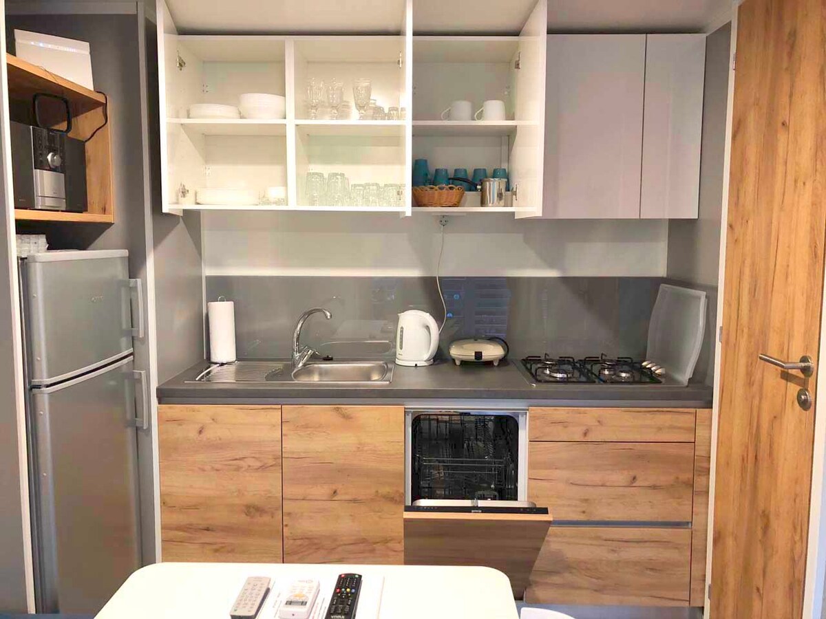 Adriastay 360 is a luxury mobile home located in the Klenovica campsite, 100m from the beach. Enjoy the beautiful view from the terrace of the endless sea and the island of Krk and experience an unforgettable sunset.