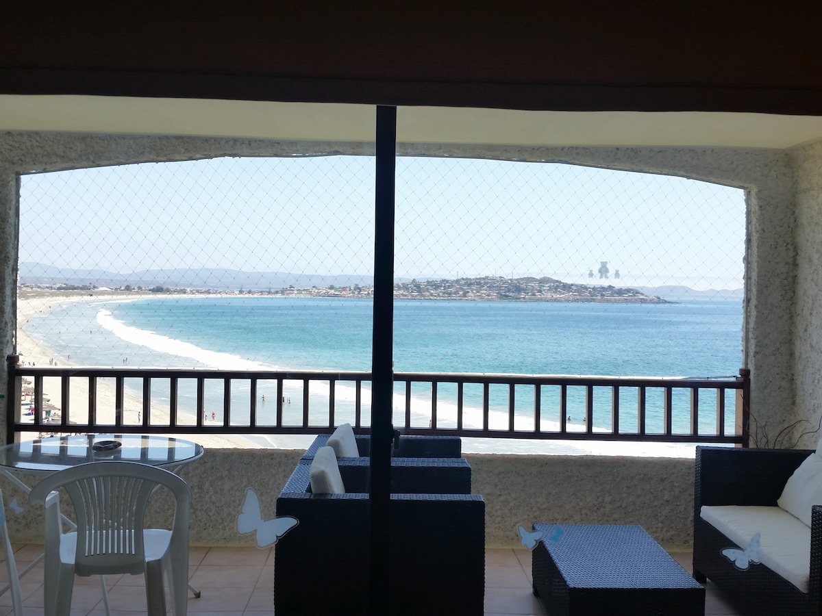 Precioso departamento en Puerto Velero. Ideal familias con niños. Linda vista panorámica al mar y los jardines. A pasos de la playa y piscinas. Muebles e implementos de primera calidad. 2 dorm. 2 baños. 1 estac. Toallas de baño y ropa de cama incluídas. Wifi Rápido. 3 Smart TVs con servicios de streaming. Rica calefacción de panel radiante. Cerradura digital, acceso sin llave a cualquier hora. Se reciben familias con perritos pequeños preguntando antes. Tengo categoría super anfitrión.