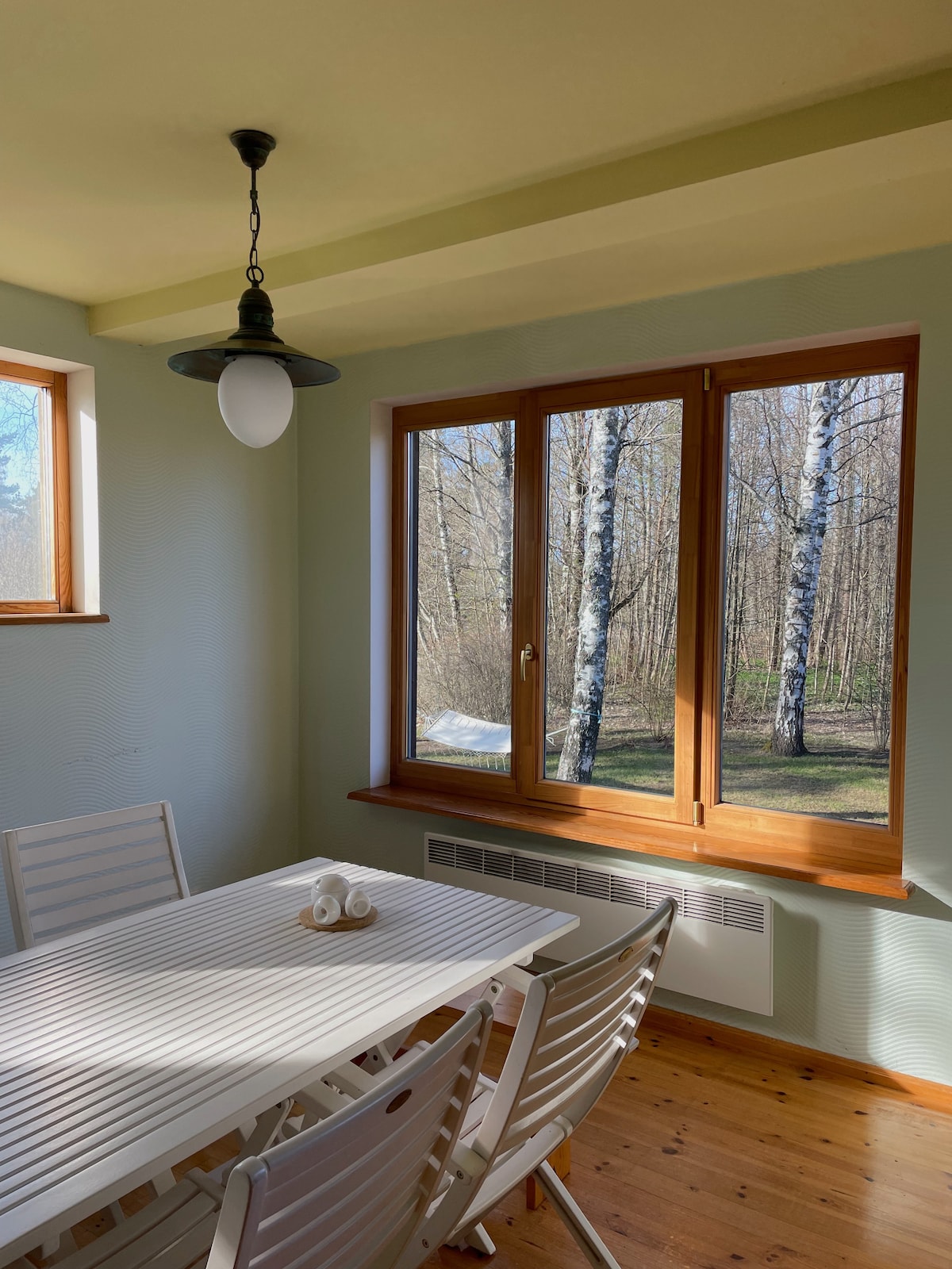 Casa de retiro para todas las estaciones para una pareja o una familia con hasta 2 hijos. Hecho con amor, los mejores materiales y cuidado al bienestar. Rodeada de campos de bayas silvestres y un bosque de pinos. Vecinos tranquilos y muy relajados, que ofrecen opciones para practicar deportes al aire libre. A 5 minutos a pie por una calle encantadora se llega al mar: dunas blancas, caminos peatonales y rutas de senderismo. A 5 minutos a pie en la otra dirección se encuentran las tiendas de comestibles Rimi y Top y la estación de tren. A 10 minutos a pie del mercado local todos los viernes.