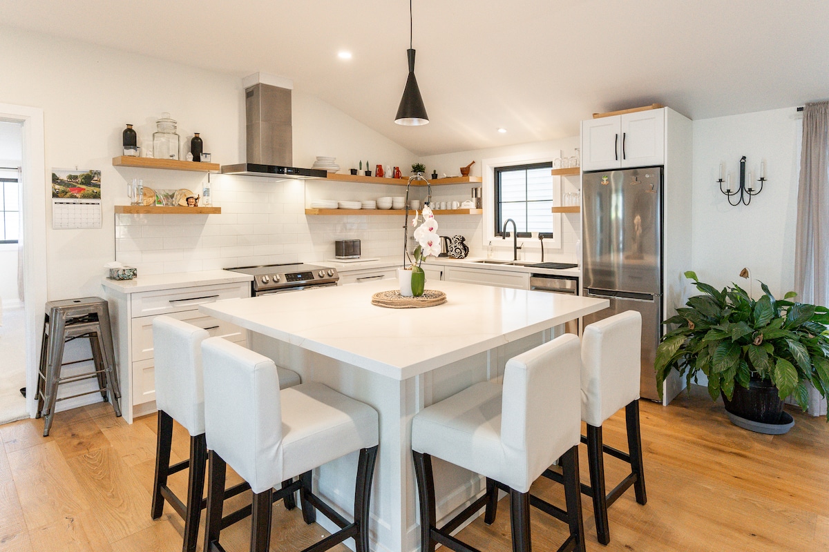 Bienvenido a Bench Wine House en Beamsville, en el corazón de la región vinícola de Niágara. Este alojamiento está preparado para que disfrutes de lo que ofrece Niágara con 15 bodegas y deliciosos restaurantes en un radio de 10 minutos. También hay cervecerías artesanales y destilerías de lotes pequeños en la zona. La casa cuenta con 4 dormitorios más un loft y espacio para dormir para 14 personas en camas. 4 camas tamaño queen, 2 camas tamaño king y un juego de literas. Trae a la familia o escápate para un fin de semana de vino en pareja o con amigas.